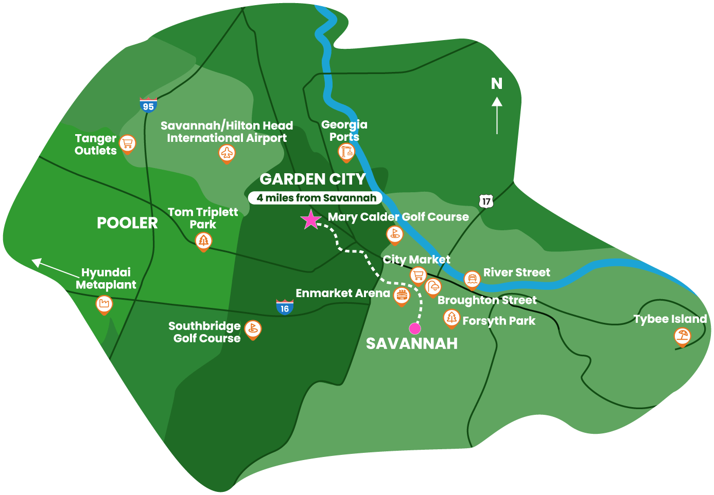 Garden City puts you in the heart of the Coastal Empire—close to it all, with space to breathe.